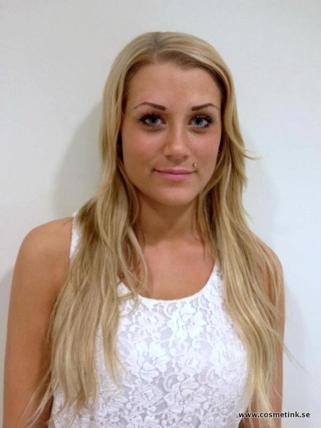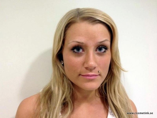 Här ser vi hur hennes ögonbryn ser ut innan pigmenteringen:
